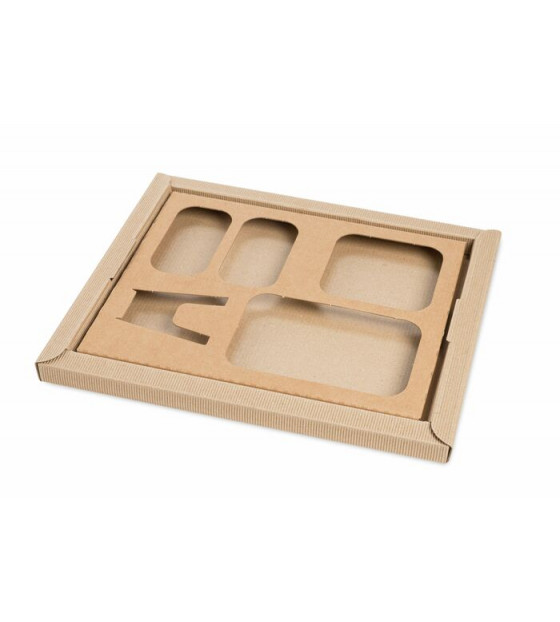Thema base and wedge in micro-grooved kraft, delivered assembled, to hold our Madera crockery kit (sold separately)