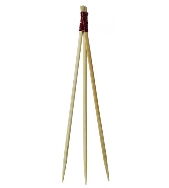 Small bamboo trident stick, held in place by a copper-coloured metal wire. Also available in 50 mm STIK35