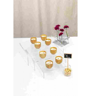 Set of 3 small transparent nesting tables, discreet and useful for all types of events or in a shop window.