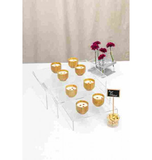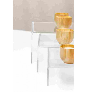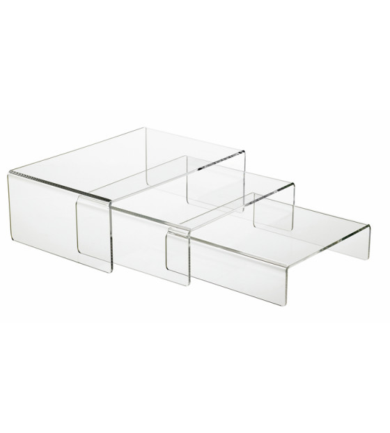 Set of 3 small transparent nesting tables, discreet and useful for all types of events or in a shop window. - 200x200xh48 mm - 250x200x60 mm - 300x200x110 mm