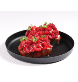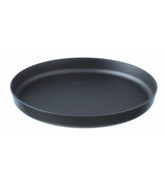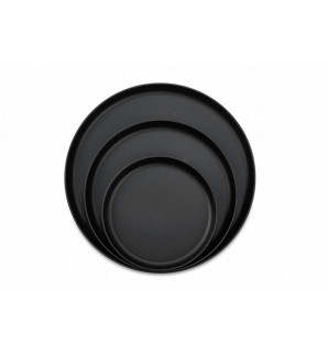 Round black plate in microwaveable PP/talc. Its sleek, modern shape and sturdiness make it perfect for a multitude of uses.