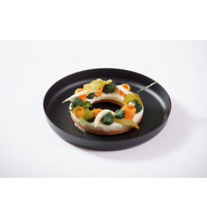 Santo plates in PP/talc are available in 3 colours (grey, black, white) with a domed lid.