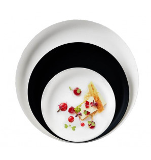 Round white plate in microwaveable PP/talc. Its sleek, modern shape and sturdiness make it perfect for a multitude of uses.