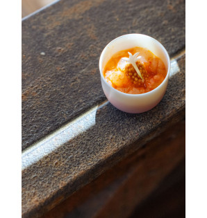 Attractive pearly white verrine with rounded shapes. With a capacity of 6cl, it will enhance your aperitif presentations with a beautiful play of colours.