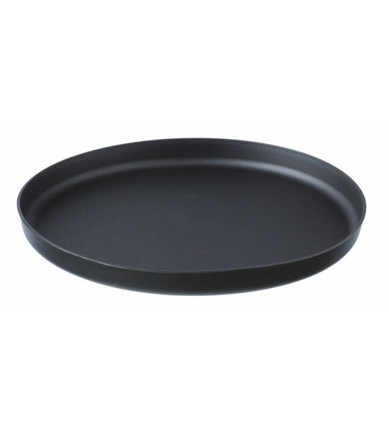 Round black plate in microwaveable PP/talc. Its sleek, modern shape and sturdiness make it perfect for a multitude of uses.