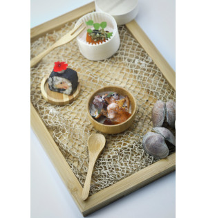 Small 3 cl round bamboo verrine. Ideal for sauces or mini aperitifs, it will add a natural touch to your events.