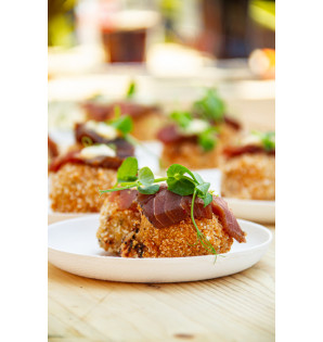 Round bagasse plate. Its sleek, modern shape makes it a perfect plate for a multitude of uses.
