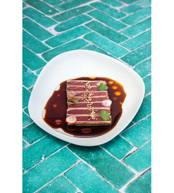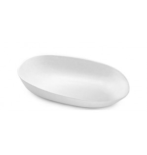 A small, asymmetrical plate in white bagasse, with gentle undulations to bring movement to your table.