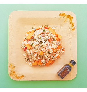Natural square plate, 100% bamboo. With its clean lines, it can also be used as a tray. Oven- and microwave-safe. You can complete this model with the Timmera 180x180 mm small plate ATM180