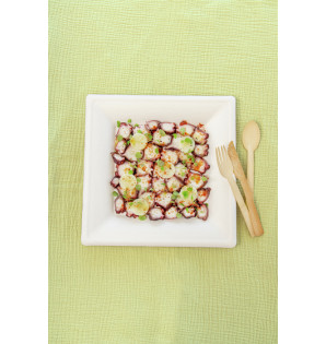 Made from natural bamboo, the cutlery is biodegradable and durable, suitable for use with foods up to 70°C. Its minimalist design fits seamlessly into catering, food service, or event settings that prioritize environmental responsibility.