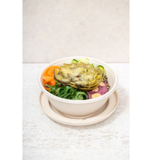 Round, raised bagasse lid, suitable for Meal Bowls 75cl MBB75 and 1L MBB100.