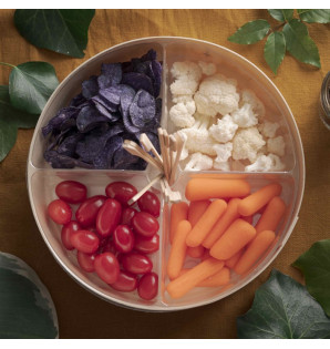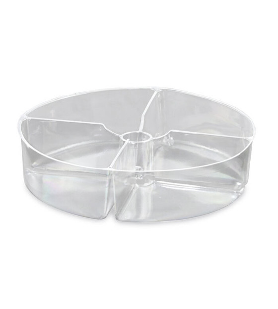 Transparent insert with 5 compartments, suitable for the Woodbox 1.6 L WB245. The 4 main compartments have a capacity of 40cl each, while the 5th smaller central compartment can hold sticks or a dip sauce. The ideal solution for sharing: cold meats, cheeses, aperitifs, fruit, mini-viennoiseries, etc.