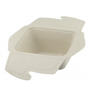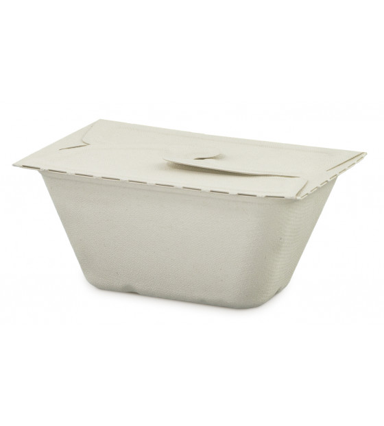 100% vegetable bagasse container with an attached lid that closes with a simple press. So you can stack them, whatever their size: Meal Box range is also available in 50cl MBXB50 and 100cl MBXB100. With a capacity of 75cl, it can accomodate a mixed salad or a single dish to be reheated. Oven- and microwave-safe. Ideal for delivery or takeaway, our Meal Boxes will add an eco-friendly touch to your brand.