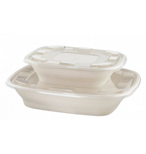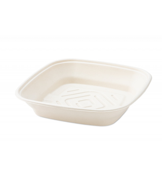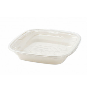 XXL square salad bowl in natural bagasse for delivering or taking away large salads, pastries or other sharing solutions.