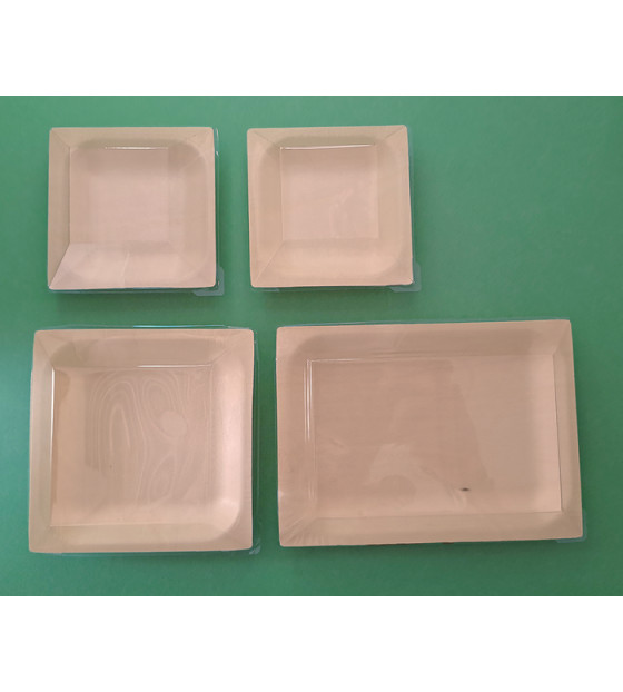 Wooden Cubik plates are made from a thin sheet of wood that gives a natural, authentic look to your meal formulas.