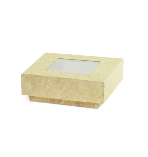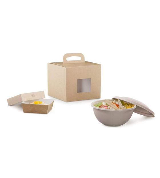 Bento formula with 1 bowl with bagasse lid 100 cl and 1 kraft tray 40 cl. Ideal for a 1-person menu.