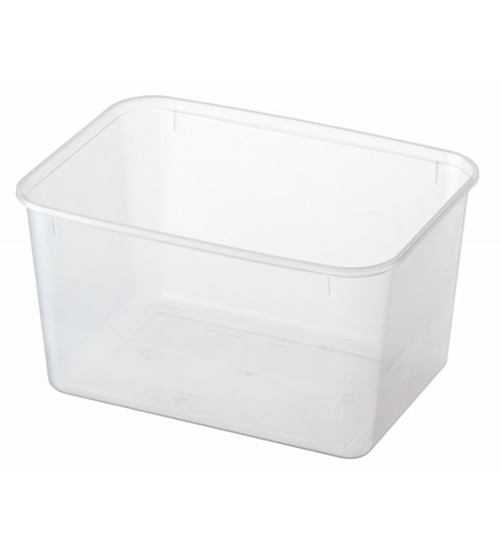 Transparent catering container with lid. Made from PP, it can be frozen or reheated in the microwave. Ideal for storage or takeaway. Made in France, it is reusable.