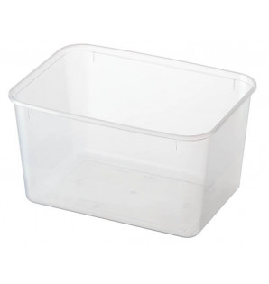 Transparent catering container with lid. Made from PP, it can be frozen or reheated in the microwave. Ideal for storage or takeaway. Made in France, it is reusable.
