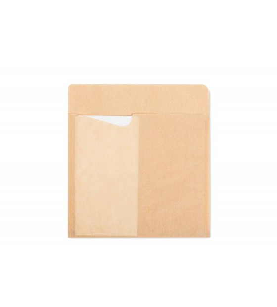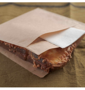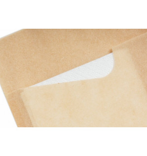 Greaseproof kraft pouch with a practical side opening for sandwiches or paninis. This clever pouch comes with a white paper napkin inserted at the top. FSC® certified, Karman pouches are an ecological and original solution for take-away sales. Also available in small size PSM145.