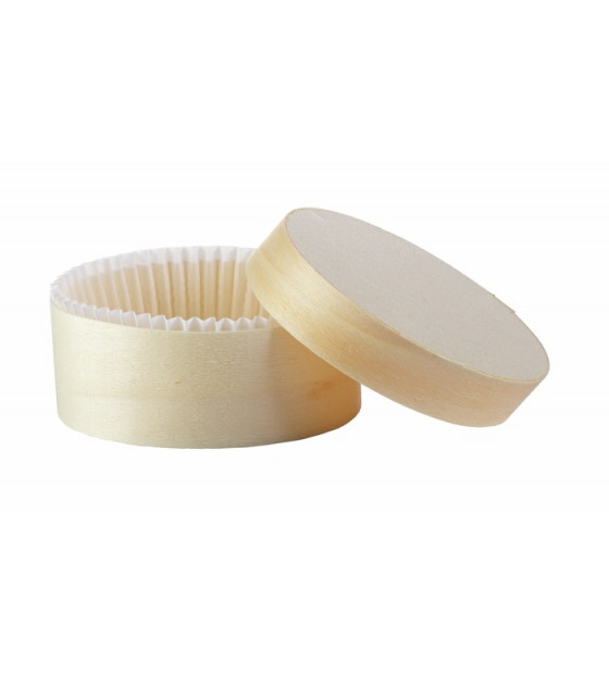 Round box made from French poplar wood from sustainably managed forests, made in France.