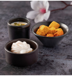 The Terra ceramic range comprises 4 verrines of 4, 6 and 20 cl. Available in 2 colours (terracotta/white interior and all-black), you'll be able to create a natural or chic and sober atmosphere.