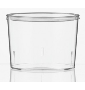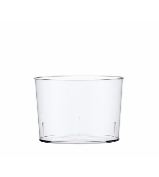 A transparent multi-purpose cup with clean, round lines. With its flat lid, it's stackable. Recyclable PS, made in France.