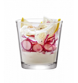 An elegant, washable and reusable verrine. Its transparency is an asset for highlighting its contents.It can also be used as a glass to complement a meal tray.