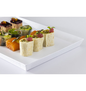 Atlas 1/1 format tray in black cardboard, suitable for food contact. Its sloping sides add elegance and practicality, keeping the PACV1 transparent lid firmly in place. A cardboard case with a window will be very practical for secure transport while maintaining visibility of its contents ECL11.