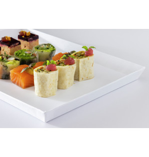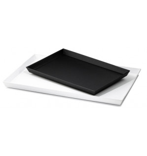 Atlas 1/1 format tray in black cardboard, suitable for food contact.