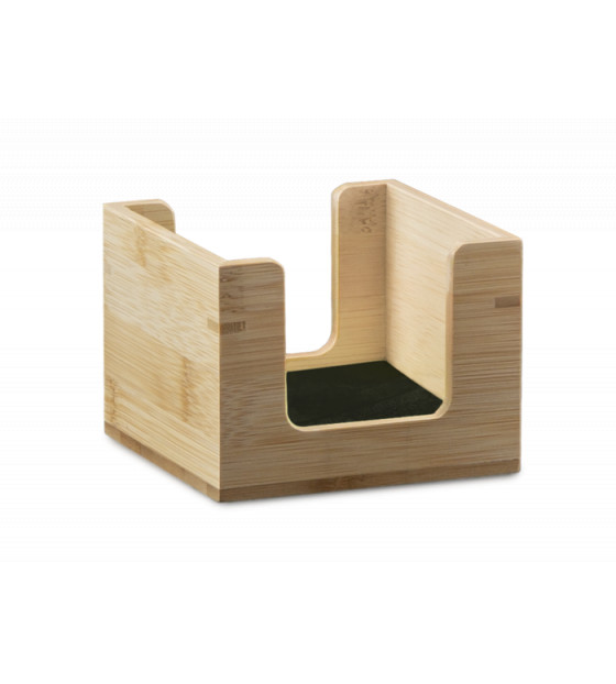 Bamboo dispenser suitable for cocktail napkins (folded 10x10 cm, open 20x20 cm). Washable and reusable, it's an essential natural accessory for your receptions.