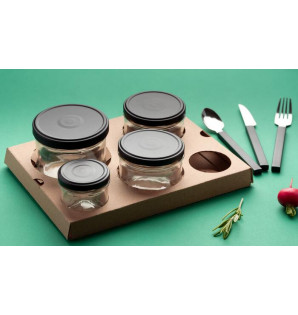 Screw-on lid in matt black metal, with gasket for hermetic closure.