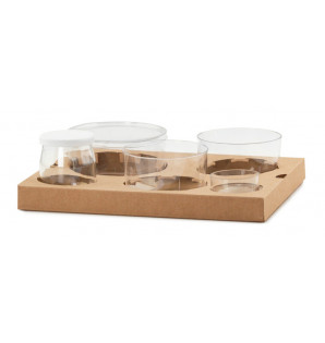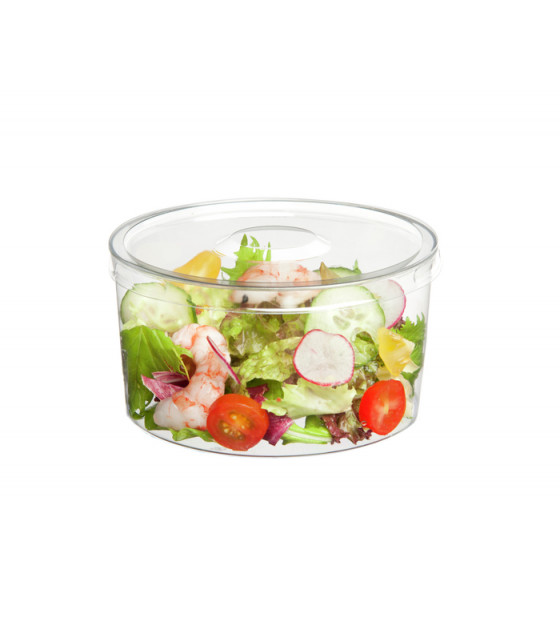 A transparent multi-purpose cup with clean, round lines. Stackable and recyclable, it closes with a flat lid.