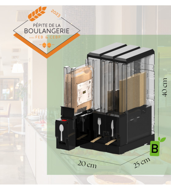 - Optimum hygiene: zero contact during filling and use, no risk of contamination (cutlery packaged in bags of 800 units to be inserted directly into the dispenser).