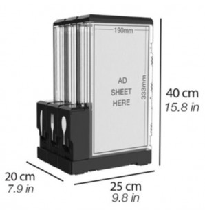 - Customisable: advertising leaflets can be inserted on the side panels (18.8 x h33.5 cm).
