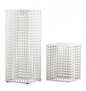 Totem is an openwork display stand in white steel, available in two heights (20 and 40 cm). Real decorative objects, Totems are sturdy and reusable.