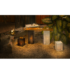 The City Totem range comprises 4 black or white openwork steel displays in two heights, 20 and 40 cm.