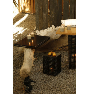 Totem is an openwork display stand in black steel, available in two heights (20 and 40 cm). Real decorative objects, Totems are sturdy and reusable.