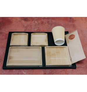 The Cubik range is also available in wood, bagasse, cardboard/PET, and PS.