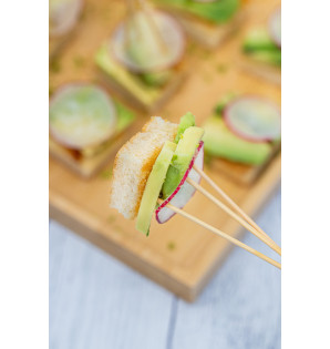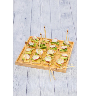 Cubik bamboo plates are natural and of premium quality. Moisture-resistant, they are washable and reusable. Thanks to a 15 mm rim, their transparent lids are easy to position (sold separately). Dishes compatible with our meal trays.