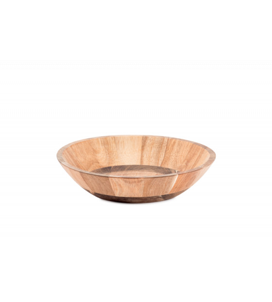 Solid acacia salad bowl for presenting a variety of fruit or vegetable dishes.