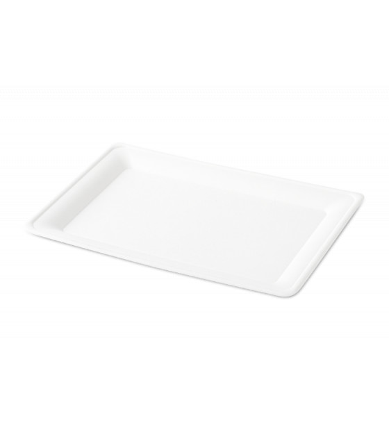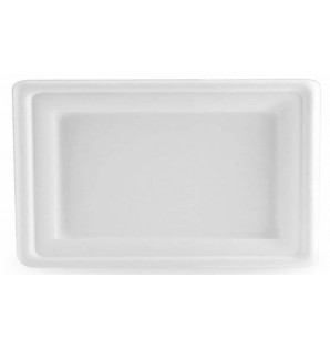 The Fibra range of white bagasse plates includes 3 square plates and 1 rectangular plate.