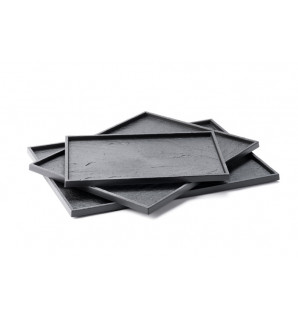 Black Textura tray, Atlas 1/2 format, with a matt slate texture effect on all surfaces: base + edges. High quality, washable (60°C) and reusable!