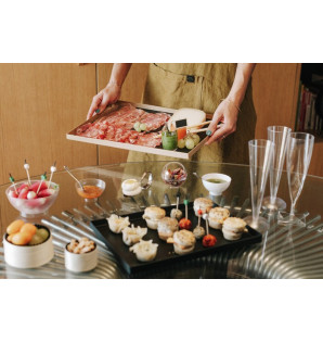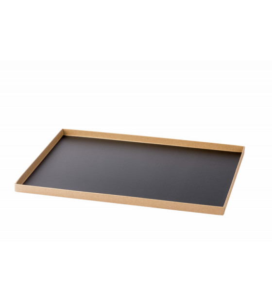 Atlas 1/1 format kraft tray with straight edges and a textured effect, giving it a modern, practical design. Its smooth, black, scratch-resistant surface is suitable for food contact. Cardboard lids in black CCL11N or in kraft CCL11K will be perfectly held in place by inserting them inside the tray.