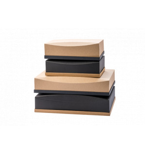 Cardboard lids in black CCL12N or in kraft CCL12K will be perfectly held in place by inserting them inside the tray.