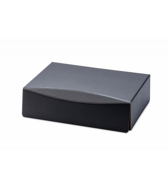 Black cardboard lid suitable for Caterlux Atlas 1/2 trays with straight edges PCLD2719 and PCLD2719K. Supplied flat, simply fold the 4 sides to keep them inside the tray. Its good height is ideal for transporting larger items than toasts or mini verrines. This model is also available in kraft CCL12K