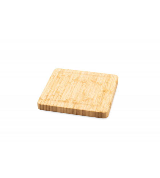 Square board made from solid, thick bamboo (2 cm) for optimum quality and reusability. To play with heights and for elegant buffet presentations, you can place it on the wooden risers RGA3 or on one of our Obvie non-slip metal supports SMN405. We recommend wiping it down with a soft cloth. Also available in 80x20 cm PBK800