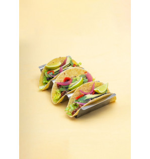 Stainless steel stand for 2 or 3 tacos. An essential accessory for preparing this Mexican speciality, it is sturdy, washable and reusable. Each taco can be filled neatly.