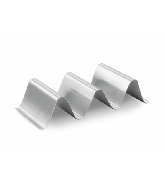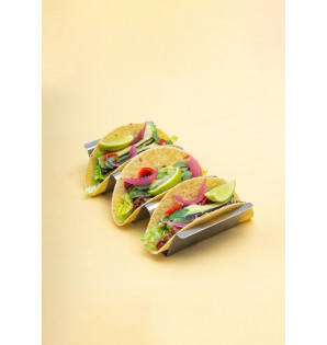 Discover this stainless steel taco holder designed to hold 2 or 3 tacos in an upright position during filling. No more tacos tipping over and toppings spilling: this practical accessory allows you to fill each taco cleanly effortlessly.