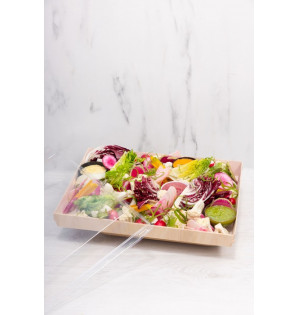Made in France from wood sourced from French forests, the Hopla tray is the result of an innovative design: all you have to do is fit the 4 corners together, like a jigsaw puzzle. Packaged and delivered flat, it saves valuable storage space. A transparent lid ensures safe, hygienic transport PACV1. Hopla is also available in Atlas 1/2 format PHP12