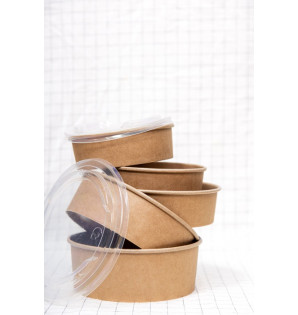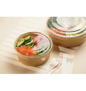 Ultra-strong round tub made from kraft and PE, suitable for takeaway sales. A PP lid (sold separately) ensures safe transport while providing perfect visibility of contents CPOK190